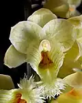 Clowesia is a genus of the family Orchidaceae. Species of this genus are epiphytic and contain many pseudobulbs with several internodes. The leaves of this plant are arranged alternatively in two vertical rows on opposite sides of the rachis. Clowesia has a simple gullet flower that allows for pollination by male euglossine bees. The flowers are often unisexual and contain a viscidium.