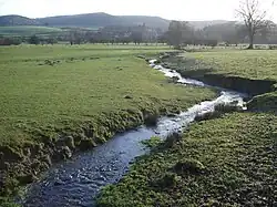 The River Clun, which flows through the parish from the north to the south, divides the parish into two almost equal parts. The parish borders the county of Herefordshire to the south.[11] The northwest corner of the parish (the locality of Hope, on the east slope of Clunbury Hill) falls within the Shropshire Hills AONB, but the village itself does not. The highest point in the parish is Goat Hill (in the northeast corner) at 312 metres (1,024 ft); the lowest point is where the Clun exits the parish (and county) south of Broadward, at 122 metres (400 ft).[11]