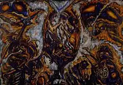 Cluster Paintings are a series of paintings created by Nabil Kanso in 1986–1988. They are characterized by compositions that divide the canvas space into sections reflecting a cluster of irregular shaped planes offering variations of contrasts and viewpoints. These characteristics expanded in later works such as the America and Living Memories series.[1]