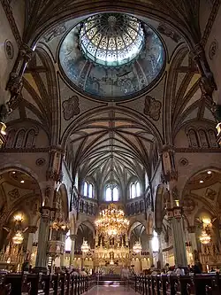The cathedral is very large, measuring 74 metres (243 ft) long, 41 metres (135 ft) wide and 81 metres (266 ft) high. Louis Jobin renovated the church in 1930. The roof, which had been covered in steel, was restored in 1999 using 60,000 pounds (27,000 kg) of copper. Further restoration work is planned.[3][4]