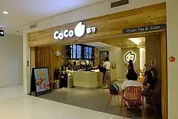 CoCo Fresh Tea & Juice (Chinese: CoCo都可茶飲; lit. 'CoCo You Can Drink Tea') is a global bubble tea, or boba, drink franchise based in Taiwan.[1] It was established in 1997 by Tommy Hung, the current chairman.[2] CoCo has more than 5,000 locations[3] in China, South Korea, the U.S., Canada, Mexico, France, Spain, Australia, the United Kingdom, Sweden, Netherlands, Belgium, the Philippines, Indonesia, Japan, Thailand, Vietnam, Mauritius, New Zealand, Italy, Cambodia, and Peru.[4] Its taro milk tea was recommended by Eater.com.[5] Some Hong Kong franchise owners stirred controversy by expressing their support for the Hong Kong protesters with slogans like "Add oil (term of encouragement), Hongkongers" on customers' receipts in 2019.[6]