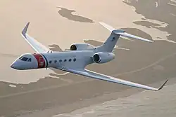 As of 2020, the air station has two Gulfstream C-37 aircraft assigned.[13] The C-37, derived of the popular Gulfstream G550 platform, provides the Commandant, the Secretary of Homeland Security, and other required-use passengers with nonstop intercontinental transportation capabilities while maintaining long range command and control functionality. An array of communications equipment permits the Commandant to command from the aircraft as efficiently as from headquarters.[5]