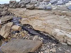 Survivors of the wreck of the Sydney Cove reported seeing coal south of Sydney, after completing their 700 km trek along the coast in May 1797. The explorer George Bass was tasked to confirm the discovery, and, in July 1797, he reported seeing a coal seam "six foot deep in the face of a steep cliff which was traced for eight miles in length"[5][6] (Sites where coal outcrops are visible along the coast south of Sydney include Coalcliff, where coal outcrops in the sea-cliff, and near the ocean pool at Wombarra and at Bell's Point and Brickyard Point, both at Austinmer, where coal outcrops in the headlands.)