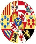 Although initially their use was only nominal, by 1750 the coat of arms of the Spanish monarch appeared on every coin coined in Chile. In the golden coins (Escudos), from 1749 to 1763, the greater arms of Phillip V were shown; and from 1763 to 1817, when Chile became independent, Charles III and Ferdinand VII used another version that included Parma and Tuscany.[4] The Spanish emblem was no longer used during the final years of the Patria Vieja.[1]