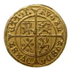 Some coins of Pomerania-Stettin, minted during the reign of dukes Philip II, and later Bogislaw XIV, depicted a griffin with a crown on its head, holding a sword in its right hand, and in most versions, had its left hand put on an open book.[12]