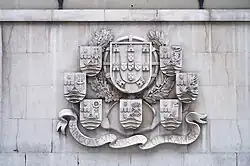Coat of arms of Portugal and its colonies at the headquarters of the Banco Nacional Ultramarino.