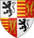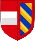 Per pale, dexter gules a fess argent (for Austria); sinister bendy of six Or and azure, a bordure gules (for his wife Mary Duchess of Burgundy). |
