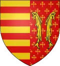 Gules a lion rampant argent, queue fourchée crossed in saltire, armed, langued, and crowned Or.[3] |