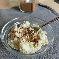 ![]() Cocada amarela with some cinnamon powder in a glass bowl | |