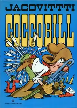 Cocco Bill is an Italian comics character by Benito Jacovitti. He is the star of a parody Western comic set in hypothetical places in the Far West. He is a hot-tempered gunslinger who drinks chamomile tea. Occasionally mocked for this, Bill responds with violence. Despite these outbursts, Cocco Bill is a good guy, and always helps sheriffs to capture criminals.[1] After Jacovitti's death in 1997 the series was continued by Luca Salvagno.