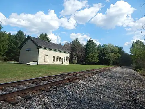 Cochecton Railroad Station is a historic train station located at Cochecton in Sullivan County, New York. It was built about 1850 by the Erie Railroad as a freight house. It is a large, 1-story frame building with Greek Revival style details. The 1+12-story, rectangular building measures 30 feet wide and 50 feet deep and is topped by a gable roof.[4] The last passenger trains at Cocheton were unnamed trains from Hoboken, New Jersey to Binghamton timed to meet up with the Phoebe Snow.[5]