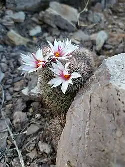 Cochemiea fraileana is a rare species of cactus in the genus Cochemiea commonly known as the Fraile nipple cactus.[2] This species is endemic to the state of Baja California Sur in Mexico and can be found along the east coast of the southern part of the state in desert scrub communities. They tend to grow in non-calcareous dry granite-based soil but can also grow in rocky habitats, either in rock fissures or directly on top of the rock surface even without the presence of soil. Thus, the mineral composition of the rocks in their habitat directly influences their abundance. The habitat of Cochemiea fraileana is home to succulent flora and is particularly rich in local endemics. Currently, no major threats to the species are known to exist.