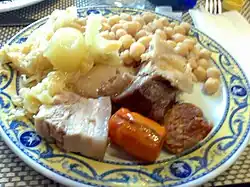 Cocido madrileño (Spanish: [koˈθiðo maðɾiˈleɲo]; "Madrilenian stew") is a traditional chickpea-based stew associated with the Madrid region.[1] It is most popular during the winter.[1] Long-cooking cocidos are thought to be derived from Sephardic adafina recipes.