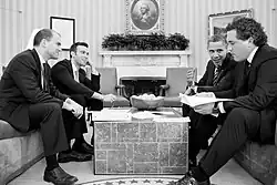 Cody Keenan is an American political advisor and speechwriter who served as the director of speechwriting for President Barack Obama. Keenan studied political science at Northwestern University.[1][2] After graduation, he worked in the U.S. senate office of Ted Kennedy,[3] before studying for a master's in public policy at the Harvard Kennedy School.[4] After graduation, he took a full-time position on Barack Obama's presidential campaign in 2008.[3] In 2009, he assumed the position of deputy director of speechwriting. After Jon Favreau left the White House in 2013, Keenan took over as director of speechwriting.[4]