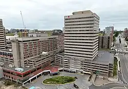 Cogswell Tower is part of the Scotia Square Complex in downtown Halifax, Nova Scotia. It is used for office and commercial space and stands at 79 metres (259 ft) with 14 floors, plus levels G, P1, P2, P3, P4, P5, P6 (bottom to top) underneath, which are part of the parkade on which Cogswell Tower sits. G level is ground level for Barrington Street and connects to the lobby of the Delta Halifax, P1 enters into Scotia Square, and P3 level is ground level for Albemarle (formerly Market) Street. The building is connected to the Downtown Halifax Link system.
