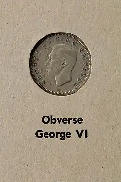 It consists of a strip of cardboard, typically measuring 11 inches wide by 14 inches tall, with holes punched into it the size of the particular coins. A face paper having the same hole pattern carries the appropriate text and graphics. This typically consists of dates and mintmarks printed beneath each opening, sometimes with the addition of the number of pieces coined for that issue. A bold title for the coin series will appear at the top of the board, and the bottom of the face will have publication and copyright information. On some coin boards the bottom of the face will also provide some historical and technical information about the coin series, as well as misguided instructions for cleaning coins. On the most common coin boards, those published by Whitman, this information was later moved to the back of the board, and this is more typical for other publishers, too.[1]