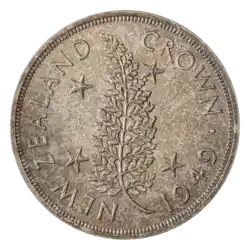 The Coinage Committee considered recommending a decimalised coinage, but ultimately chose to continue the same denominations as circulating Imperial silver coinage: the threepence, sixpence, shilling, florin, and half-crown. The Coinage Act, 1933, would outline the denominations, as well as their weight and acceptable degree of variation from this standard.[8] A sixth 'crown' denomination was outlined in the act, but no coins of this denomination would be minted until the Waitangi crown in 1935, and none would circulate until a commemorative issue in 1949.[4]