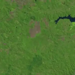 The Colônia crater is a recently confirmed impact crater located in the municipality of São Paulo, Brazil.[1] It is a round bowl-shaped depression, without any obvious central bulge, with a diameter of about 3.6 kilometres (2.2 mi), bounded by a circular ring of hills about 125 metres (410 ft) high relative to the inner depression. Its approximate location is 23°52′S 46°42′W / 23.867°S 46.700°W, 770 metres (2,530 ft) above sea level.[2] The name comes from the town district of Colônia located just north of the feature.