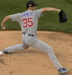 Colbert Michael Hamels (born December 27, 1983), nicknamed "Hollywood",[1] is an American former professional baseball pitcher. He played in Major League Baseball (MLB) for the Philadelphia Phillies (2006–2015), Texas Rangers (2015–2018), Chicago Cubs (2018–2019), and Atlanta Braves (2020).
