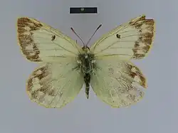 - ^ Josef Grieshuber & Gerardo Lamas (2007). "A synonymic list of the genus Colias Fabricius, 1807 (Lepidoptera: Pieridae)" (PDF). Mitteilungen der Münchner Entomologischen Gesellschaft. 97: 131–171. Archived from the original (PDF) on 2016-03-04. Retrieved 2013-05-17.