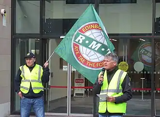 He was active in the 1984–1985 miners's strike in Ayrshire and at the Ravenscraig picket line. The 103-day[6] Caterpillar occupation of 1987–88 saw him involved in the key industrial battle of the time.[7] In 1988, he went to London to work for Militant at its headquarters in Hackney Wick.[8] He held a variety of posts in its industrial department, finance department, and as circulation manager of the Militant newspaper. Here, he was heavily involved in the leadership of the anti-poll tax struggle which brought down Margaret Thatcher.