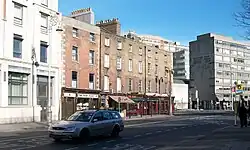 Number 6 College Street, a four-storey over basement red brick building, was built about 1820. A robe maker, Elizabeth Hawkins, traded in the premises in 1862.[12] In 1890 it became a retail shop to the bakery trade, called the Irish Yeast Company opened by a barrister Henry West.[13] The last owner, John Moreland, whose family acquired the shop in the 1930s, started working there in the 1940s when he left school and run the shop until it closed.[14] When Moreland, who lived above the shop, became ill in 2017 and the shop ceased operation. He died on 18 July 2017.[15] The building was sold in 2018 for €850,000 and the new owners, who own properties in Fleet Street whose buildings back onto College Street include a pub Bowe's. They applied for planning permission to enlarge Bowe's pub by incorporating the Irish Yeast Company premises but were refused because it would "seriously injure the special architectural and historic character and integrity."[16] A revised plan was again rejected in 2021 but Dublin County Council overruled An Bord Pleanála on 31 January 2024 by allowing the development of a "cafe/bar and reception area and three apartments in the late Georgian building that has been vacant since 2018 and is in a state of disrepair. Conservation and restoration are needed to this "a very important historic building" as noted by the Dublin County Council and An Bord Pleanála.[17]