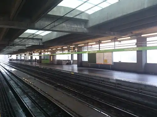 Cologno Sud is a suburban station on Line 2 of the Milan Metro in the municipality of Cologno Monzese.