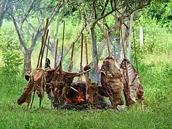 Representative main courses are bandeja paisa, lechona tolimense, tamales,[10] and fish dishes such as arroz de lisa, especially in coastal regions where suero, costeño cheese, peto costeño made from white corn, kibbeh, and carimañolas are also eaten.