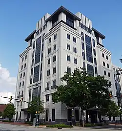 In 1934, the federal courthouse at the corner of Main and Laurel streets was purchased by the city for use as City Hall. Built of granite from nearby Winnsboro, Columbia City Hall is listed on the National Register of Historic Places. Designed by Alfred Built Mullett, President Ulysses S. Grant's federal architect, the building was completed in 1876. Mullet, best known for his design of the Executive Office Building in Washington, DC, had originally designed the courthouse with a clock tower. It was not constructed, perhaps because of large cost overruns on the project. Copies of Millet's original drawings can be seen on the walls of City Hall alongside historic photos of other Columbia beginnings. Federal offices were moved to the new J. Bratton Davis United States Bankruptcy Courthouse.