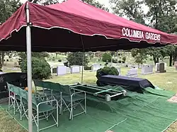 The "park" initially encompassed nearly thirty-eight adjoining acres, with an option to purchase an additional thirty acres.[1] The Columbia Gardens Cemetery has been family operated for four generations. At present it is one of the few cemeteries in the Northern Virginia area offering available burial sites with the option of an upright monument. Other options range from columbarium niches to family mausoleums.