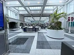The terminal opened May 30, 1965, and was renovated in 1997. The renovation was designed by Heyward, Woodrum, Fant & Associates, Ltd.[6] It replaces a terminal built in the early 1950s which was a replacement of a terminal built several years earlier in the early 1950s.[7] Since the late 1980s, capital improvements have been undertaken, including a renovated and expanded terminal, a new parking garage (completed in 2003), the lengthening of the runways, and better interstate access. The terminal has several services, including gift shops, the Everett Adams Memorial Chapel, restaurants and bars inside the terminal. Free wireless internet service is provided throughout the airport as well as small number of recharge stations with access to outlets.