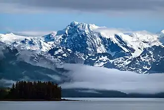 Based on the Köppen climate classification, Columbia Peak is located in a subarctic climate zone with long, cold, snowy winters, and mild summers.[4] Weather systems coming off the Gulf of Alaska are forced upwards by the Chugach Mountains (orographic lift), causing heavy precipitation in the form of rainfall and snowfall. Winter temperatures can drop below −20 °C with wind chill factors below −30 °C. This climate supports the Meares and Columbia Glaciers surrounding this mountain. The months May through June offer the most favorable weather for climbing or viewing.
