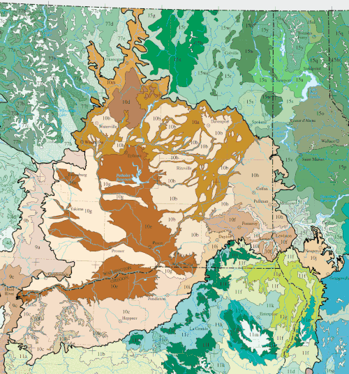 ![]() Level III ecoregions of the Pacific Northwest. The Columbia Plateau ecoregion is marked with (10). | |