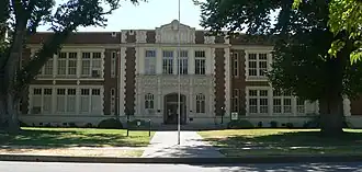 Top: Old Colusa High School; bottom: Colusa City Hall. | |