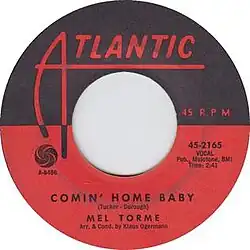 Despite Tormé's reservations, his version of the song, with an arrangement by Claus Ogerman, became his biggest hit since the early 1950s.[5] It spent eleven weeks on the Billboard Hot 100,[6] debuting at number 88 the week of November 3, 1962 and peaking at number 36 the week of December 29, 1962.[7][8] It reached no.13 on the UK singles chart.[9] It was also the title track of his album Comin' Home Baby! (with added exclamation mark).[10] Tormé's recording was nominated as Best Male Solo Vocal Performance and Best Rhythm and Blues Performance at the 1963 Grammy Awards.[11]