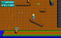 Commander Keen in Keen Dreams is a side-scrolling platform video game: the majority of the game features the player-controlled Commander Keen viewed from the side while moving on a two-dimensional plane. The player character can move left and right and can jump; unlike the prior trilogy of episodes in the series, known collectively as Commander Keen in Invasion of the Vorticons, Keen cannot jump higher using a pogo stick. The levels are composed of platforms on which Keen can stand, viewed from slightly above so as to give a pseudo-3D effect, and some platforms allow Keen to jump up through them from below, while others feature fireman's poles that Keen can climb up or down.[3] Once entered, the only way to exit a level is to reach the end, though unlike in Vorticons the player can save their game at any point. In between levels the player travels on a two-dimensional map, viewed from above; from the map the player can enter levels by approaching the entrance or save their progress in the game. Some levels are optional to enter and may be bypassed.[4]