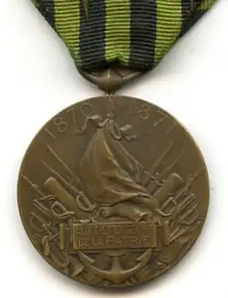 The Commemorative medal of the 1870–1871 War (French: Médaille commémorative de la guerre 1870–1871) was a French military campaign medal awarded to those who served during the Franco-Prussian War.[1]