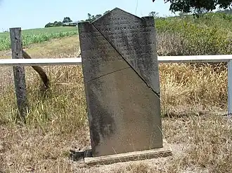The headstone and lone grave located near the junction of Tinana Creek and the Mary River adjacent to Cran Road known as Commissioner for Crown Lands John Carne Bidwill's grave site is a significant place in the history of the Maryborough region. It marks the final resting place for John Carne Bidwill who was Commissioner for Crown Lands from 1849 to 1852. Bidwill played an important role in the early development of the Wide Bay region, acting as Police Magistrate, Harbour Master, and registrar for Births, Deaths and Marriages.[1]