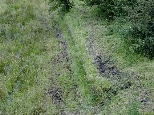 ![]() Old platforms and trackbed at Commondyke | |||||