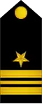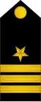 Admiral of the fleet[18] Vice admiral Rear admiral Commodore Captain Commander Lieutenant commander Lieutenant Sub lieutenant Ensign