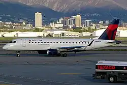 Compass Airlines, LLC, was a regional airline in the United States that operated from 2006 to 2020, when it shut down due to the COVID-19 pandemic. It was headquartered in Delta Air Lines Building C at Minneapolis–Saint Paul International Airport in Fort Snelling, Hennepin County, Minnesota;[2][3] prior to December 16, 2009, it was headquartered in unincorporated Fairfax County, Virginia, United States, east of the Chantilly CDP.[4][5][6] The airline launched inaugural service with a single Bombardier CRJ200 aircraft under the Northwest Airlink brand between Minneapolis/St. Paul and Washington, D.C., on May 2, 2007. On August 21, 2007, it began flying two Embraer 175 76-passenger aircraft, and expanded to 36 aircraft by December 2008.