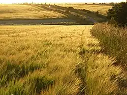 ![]() Fields of barley with narrow roadside hedgerows cover a large portion of Compton. | |