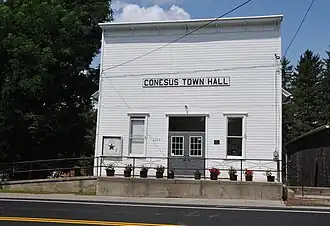 Conesus Amusement Hall, now known as Conesus Town Hall, is a historic multi-purpose community hall located at Conesus in Livingston County, New York. It was completed in 1888 and is a 1-story, three-by-four-bay frame structure, approximately 30 feet by 70 feet.[2]