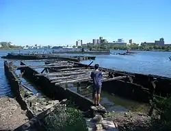 In 2020, the city planned to build a NYC Ferry dock along the creek off Kaiser Park.[39] The ferry dock would be the terminal of a new route to Pier 11/Wall Street; the route, announced in 2019, was to have begun operations in 2021.[40][41] Local activists rallied against the dock plan, arguing it would disrupt the ecosystems of the creek.[42] There were also concerns that the addition of ferry service would worsen pollution in the creek.[43][44] The implementation of the Coney Island ferry route was delayed and, in mid-2022, the EDC announced that the ferry route had been postponed indefinitely. One problem was that the sand in the Coney Island Creek shifted frequently, hampering efforts to construct a ferry pier there.[45][46] Another issue was that the creek itself was heavily polluted, and a Superfund cleanup project was being planned for the creek.[45][47] Independent news site Hell Gate subsequently reported that test boats had repeatedly run aground in Coney Island Creek and that sand had returned to the creek after it was partially dredged in 2021.[48][49] A ferry in Coney Island Creek also faced much opposition from the local residents who believed it would lead to additional air, water, and noise pollution and reduce safe playing area for children and families.[50]