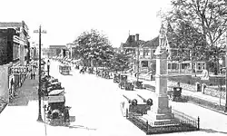 By 1919, with the coming of the streetcar and the automobile, the monument in the middle of Main Street had become a traffic hazard. Nevertheless, when city council voted to move it, the local chapter of the United Daughters of the Confederacy (UDC) and Confederate veterans strenuously objected. On October 11, 1922, after learning that opponents were seeking a restraining order to prohibit the move, members of the city council had the shaft partially dismantled and the statue hidden. Although demolition ceased after a temporary injunction prohibiting the move was served on the mayor, the statue-less remnant of the shaft remained in place on Main Street for almost two years.[11][12]