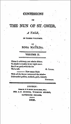 - ^ "Rosa Matilda's Novel. This Day is Published, Confessions of the Nun of St. Omer". The Morning Post. 5 March 1805. p. 2.
