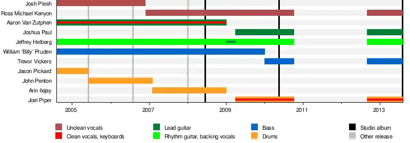 | Past members | Aaron Richard Van Zutphen Arin Ilejay Jason Pickard Jeffrey Helberg John Penton Joshua Paul Josh Plesh Joel Piper Ross Michael Kenyon Trevor Vickers William ‘Billy’ Pruden |