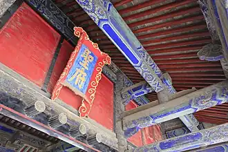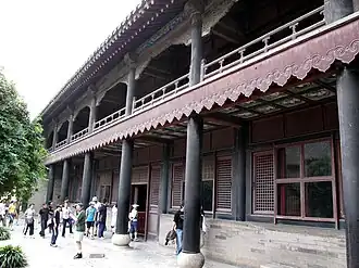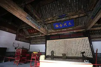 The Second Hall (Chinese: 二堂; pinyin: Èr Táng) was used for receiving high-ranking officials as well as for examinations in music and rites by the duke. It contains seven tablets inscribed by emperors, including one with the character "shou" (longevity) written by the Empress Dowager Cixi.[12]