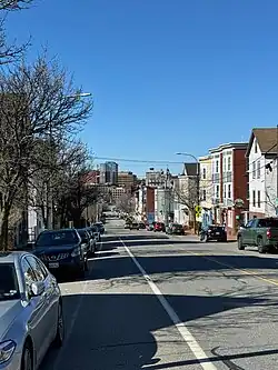 Congress Street is the main street in Portland, Maine. 5.9 miles (9.5 km) long,[1] it stretches from County Road, Portland's southwestern border with Westbrook, through a number of neighborhoods, before ending overlooking the Eastern Promenade on Munjoy Hill. In March 2009, the Portland City Council designated much of the inner portion of Congress Street a historic district.[2][3] The western section of the street includes the city's Arts District.