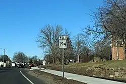 Route 194 starts at an intersection with US 5 in the village of East Windsor Hill and proceeds eastward. Half a mile later, it crosses over some railroad tracks and continues east towards the Podunk River. The road turns south after crossing the river and eventually meets with Route 74 in South Windsor center. It ends after another 0.3 miles (0.48 km) at an intersection with Route 30 in the town center.[1] Route 194 has short four lane sections near its termini but is otherwise a two lane minor arterial road. It carries traffic volumes of about 14,000 per day.